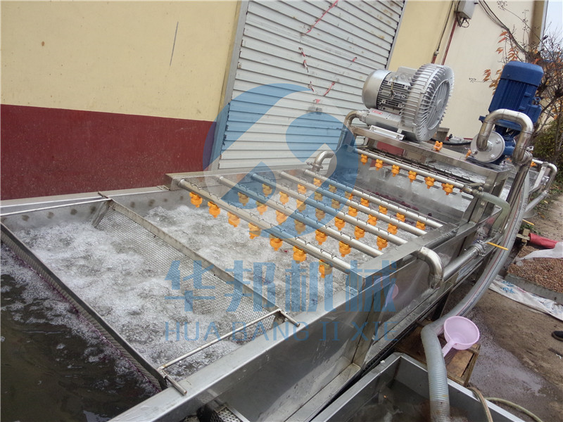 (1)本設(shè)備采用氣泵鼓泡的形式形成氣浪,主要用于產(chǎn)品表面的清洗。采用大功率、低噪音的氣泵,清洗水溫為常溫,有效的保護(hù)了物料本身的色澤和品質(zhì),效果更佳。