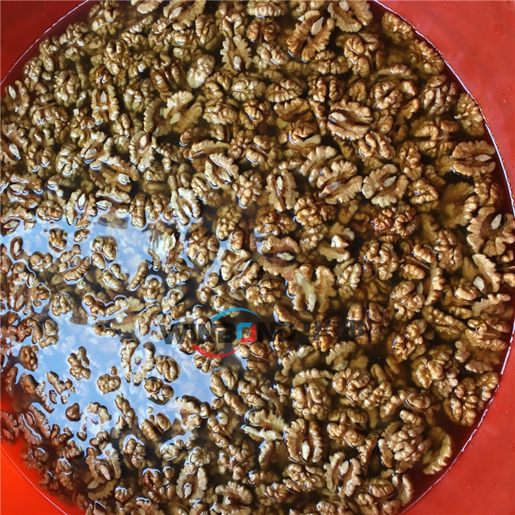 4、設備底部配有水箱,水箱上部配有物料盤,用來接核桃仁皮衣,保證底部水箱里面的水的干凈度,保證產品的干凈衛生。