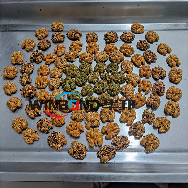 脫衣琥珀核桃仁,蜂蜜花生,琥珀核桃仁等產品流水線包括清洗、掛糖、油炸、冷卻、脫油、包裝等成套設備,有關設備以及加工工藝的更多信息請與我們聯系。