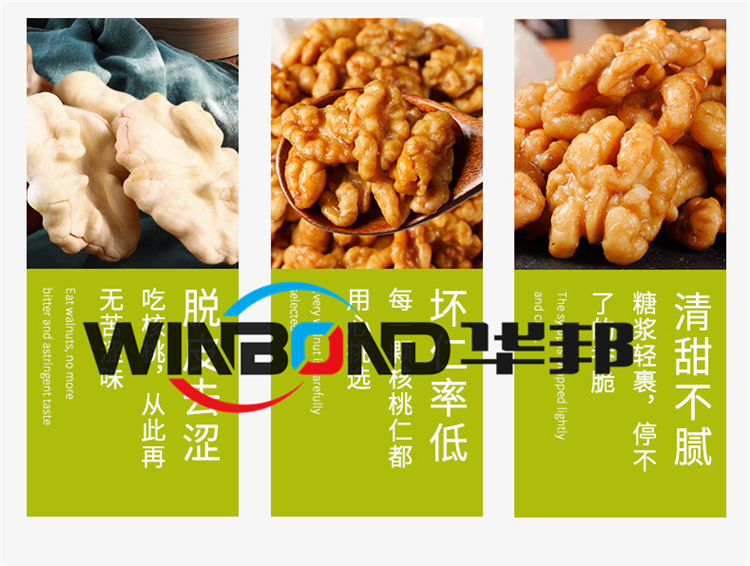 琥珀核桃仁制作方式有兩種:【脫衣琥珀核桃仁】【琥珀核桃仁】,華邦機械設備齊全,免費試機,免費提供加工工藝。