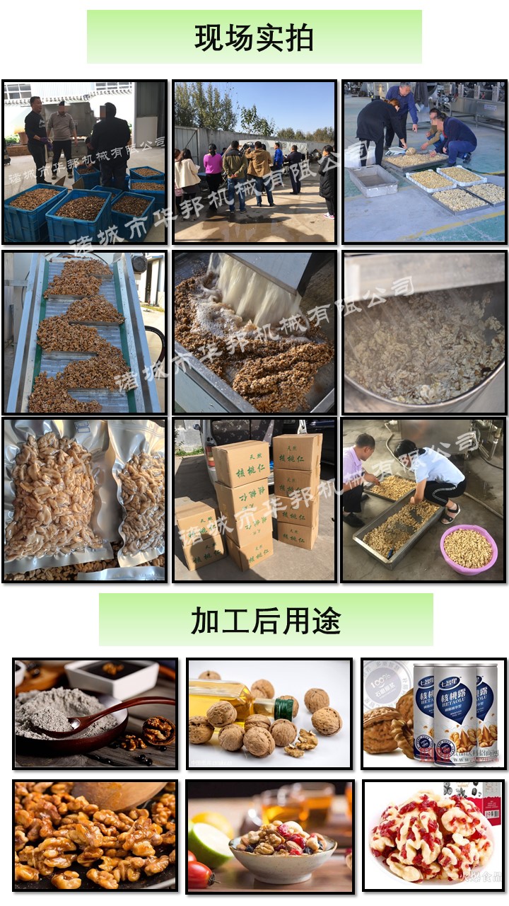 ----- 由浸泡機、儲料提升機、核桃仁去皮機、二次清洗機、燈選機、烘干機6種設備組成,電器采用德力西品牌電器。