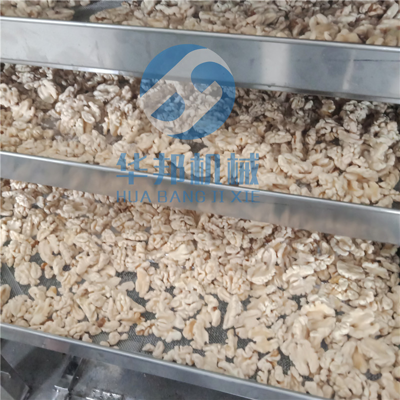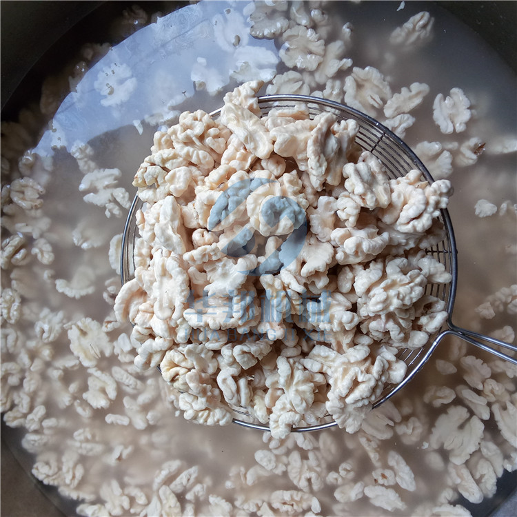 由提升機或人工將核桃仁運輸到去皮機內,全程1-2人操作即可,生產效率是人工的幾十倍,大大的節約了用工。