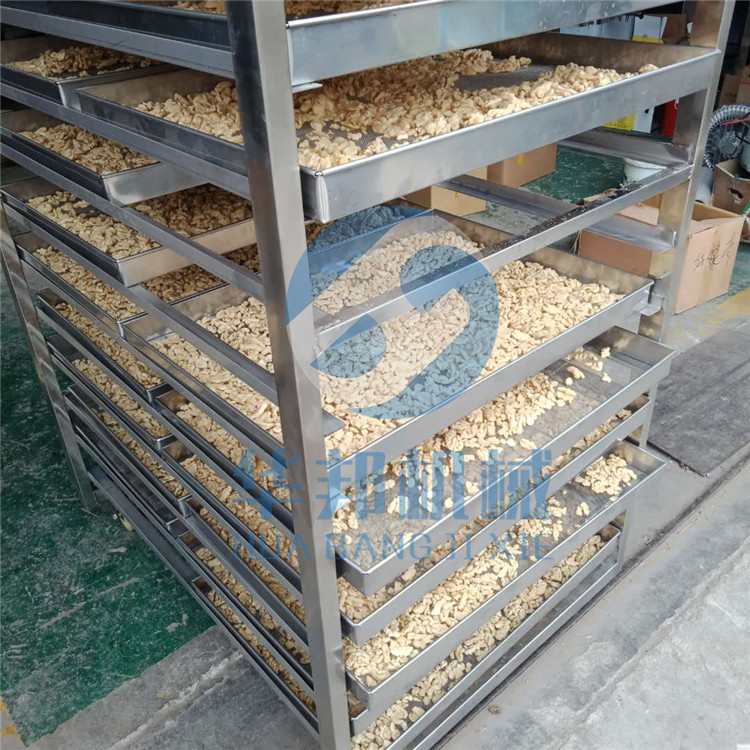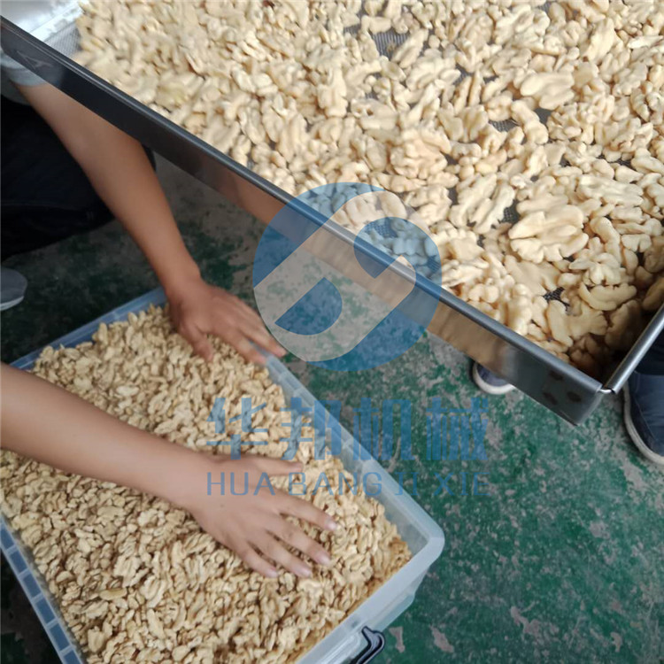 將核桃仁裝進烘干機配套烘盤內,烘干溫度和烘干時間可根據自身工藝設定。通常烘干溫度設定在55-80℃。低溫烘干利于保持核桃仁本身的口感和原色。